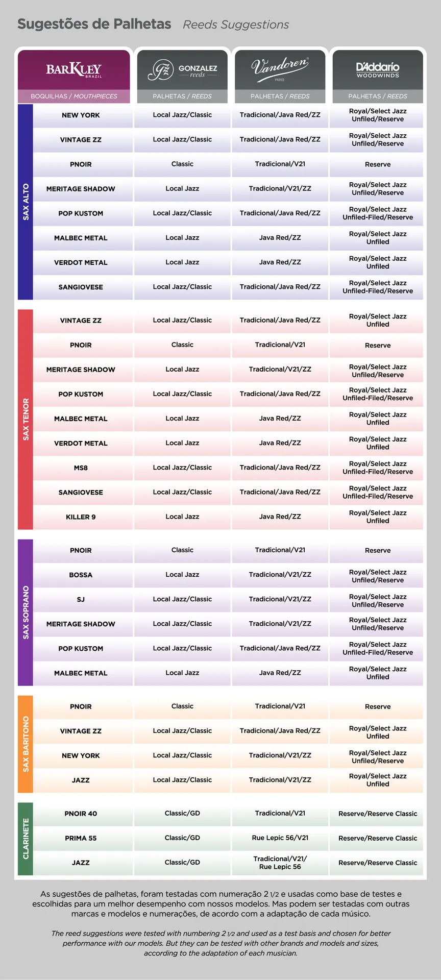 Abraçadeira: Não inclusa, recomendamos a Abraçadeira Barkley Sax Alto.